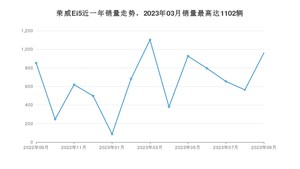 2023年9月,荣威Ei5销量为960辆,同比增长12.68%,环比增长70.52%。2022年09月-2023年09月份,荣威Ei5销量为8365辆,同比下降44.71%。