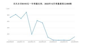2023年9月,东风本田M-NV销量为116辆,同比下降84.02%,环比增长5%。2022年09月-2023年09月份,东风本田M-NV销量为4743辆,同比下降47.23%。