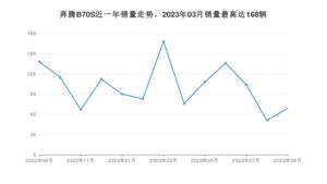 2023年9月,奔腾B70S销量为69辆,同比下降50%,环比增长35.29%。2022年09月-2023年09月份,奔腾B70S销量为1317辆,同比下降0.08%。