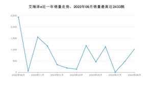 2023年9月,艾瑞泽e销量为1035辆,同比下降57.46%,环比增长115.18%。2022年09月-2023年09月份,艾瑞泽e销量为10152辆,同比下降38.78%。