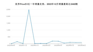 2023年9月,炫界Pro EV销量为91辆,同比增长911.11%,环比增长2.25%。2022年09月-2023年09月份,炫界Pro EV销量为3401辆,同比下降6.75%。