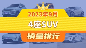 2023年9月的乘用车销量数据已经出炉,据众车网汽车行业数据监测显示,9月国内乘用车市场销量达到179.39万辆,同比下降5.14%,环比增长4.11%。每月各个细分市场的销量排行榜,也成为了大家所关注的话题,今天众车网为大家带来了,2023年9月4座SUV的销量排行榜单,有哪些车型能跻身销量榜呢?下面我们直接看数据。