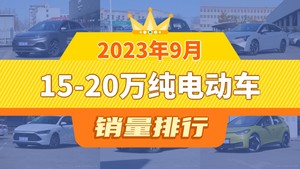 2023年9月的乘用车销量数据已经出炉,据众车网汽车行业数据监测显示,9月国内乘用车市场销量达到179.39万辆,同比下降5.14%,环比增长4.11%。每月各个细分市场的销量排行榜,也成为了大家所关注的话题,今天众车网为大家带来了,2023年9月15-20万纯电动车的销量排行榜单,有哪些车型能跻身销量榜呢?下面我们直接看数据。
