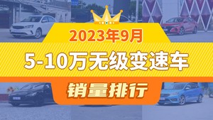 2023年9月的乘用车销量数据已经出炉,据众车网汽车行业数据监测显示,9月国内乘用车市场销量达到179.39万辆,同比下降5.14%,环比增长4.11%。每月各个细分市场的销量排行榜,也成为了大家所关注的话题,今天众车网为大家带来了,2023年9月5-10万无级变速车的销量排行榜单,有哪些车型能跻身销量榜呢?下面我们直接看数据。