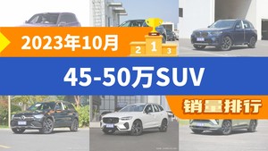 2023年10月的乘用车销量数据已经出炉,据众车网汽车行业数据监测显示,10月国内乘用车市场销量达到178.74万辆,同比下降1.03%,环比下降0.36%。每月各个细分市场的销量排行榜,也成为了大家所关注的话题,今天众车网为大家带来了,2023年10月45-50万SUV的销量排行榜单,有哪些车型能跻身销量榜呢?下面我们直接看数据。