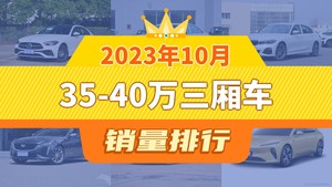 2023年10月的乘用车销量数据已经出炉,据众车网汽车行业数据监测显示,10月国内乘用车市场销量达到178.74万辆,同比下降1.03%,环比下降0.36%。每月各个细分市场的销量排行榜,也成为了大家所关注的话题,今天众车网为大家带来了,2023年10月35-40万三厢车的销量排行榜单,有哪些车型能跻身销量榜呢?下面我们直接看数据。