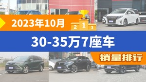 2023年10月的乘用车销量数据已经出炉,据众车网汽车行业数据监测显示,10月国内乘用车市场销量达到178.74万辆,同比下降1.03%,环比下降0.36%。每月各个细分市场的销量排行榜,也成为了大家所关注的话题,今天众车网为大家带来了,2023年10月30-35万7座车的销量排行榜单,有哪些车型能跻身销量榜呢?下面我们直接看数据。