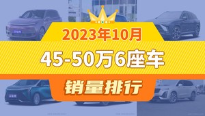 2023年10月的乘用车销量数据已经出炉,据众车网汽车行业数据监测显示,10月国内乘用车市场销量达到178.74万辆,同比下降1.03%,环比下降0.36%。每月各个细分市场的销量排行榜,也成为了大家所关注的话题,今天众车网为大家带来了,2023年10月45-50万6座车的销量排行榜单,有哪些车型能跻身销量榜呢?下面我们直接看数据。