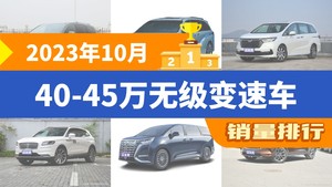 2023年10月40-45万无级变速车销量排行榜,奥德赛屈居第三,腾势D9成最大黑马