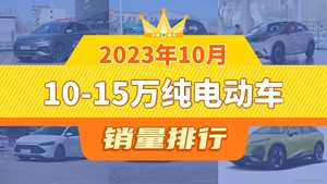 2023年10月10-15万纯电动车销量排行榜,元PLUS以30615辆夺冠,微蓝6升至第10名