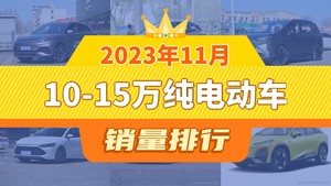 2023年11月10-15万纯电动车销量排行榜,元PLUS以30751辆夺冠