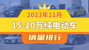 2023年11月15-20万纯电动车销量排行榜,元PLUS以30751辆夺冠