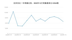 2023年11月,亚洲龙销量为6825辆,同比增长15.8%,环比下降22.7%。2022年11月-2023年11月份,亚洲龙销量为102214辆,同比下降18.4%。