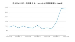 2023年11月,马自达CX-5销量为2851辆,同比增长218.9%,环比下降1.83%。2022年11月-2023年11月份,马自达CX-5销量为15864辆,同比下降22.12%。