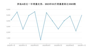 2023年11月,奔驰A级销量为5017辆,同比增长20%,环比增长125.18%。2022年11月-2023年11月份,奔驰A级销量为51640辆,同比增长15.18%。