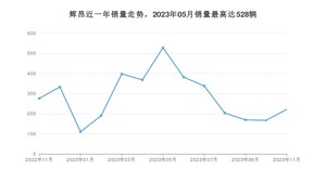 2023年11月,辉昂销量为221辆,同比下降19.93%,环比增长32.34%。2022年11月-2023年11月份,辉昂销量为3683辆,同比下降28.28%。