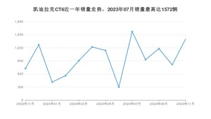 2023年11月,凯迪拉克CT6销量为1400辆,同比增长93.37%,环比增长73.05%。2022年11月-2023年11月份,凯迪拉克CT6销量为12413辆,同比下降2.59%。