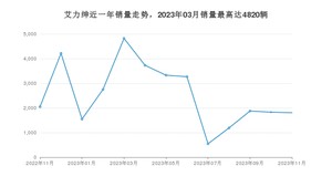 2023年11月,艾力绅销量为1806辆,同比下降11.82%,环比下降1.26%。2022年11月-2023年11月份,艾力绅销量为32951辆,同比下降17.59%。