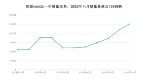 2023年11月,熊猫mini销量为15188辆,环比增长16.37%。2022年11月-2023年11月份,熊猫mini销量为103763辆,