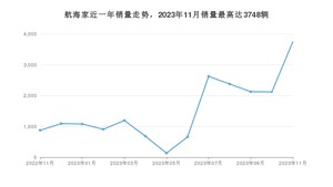2023年11月,航海家销量为3748辆,同比增长328.34%,环比增长76.88%。2022年11月-2023年11月份,航海家销量为19617辆,同比下降5.81%。