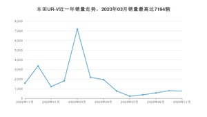 2023年11月,本田UR-V销量为765辆,同比下降51.7%,环比下降4.14%。2022年11月-2023年11月份,本田UR-V销量为22805辆,同比下降14.67%。