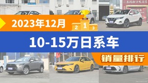 2023年12月10-15万日系车销量排行榜,逍客屈居第三,卡罗拉锐放成最大黑马