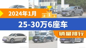 2024年1月25-30万6座车销量排行榜,问界M7以29997辆夺冠,远志M1升至第9名