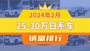 2024年2月25-30万日系车销量排行榜,威兰达夺得冠军,第二名差距也太大了