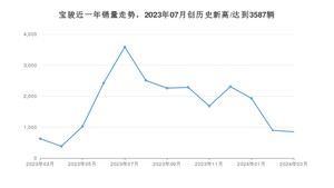 在国内市场上,宝骏,在2024年3月的销量为849辆,同比增长35.41%,环比下降5.03%。2023年03月-2024年03月份,宝骏累计销量为22742辆,较去年同期下降5.93%。