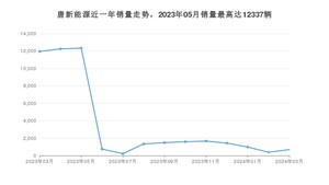 2024年3月,唐新能源销量为689辆,同比下降94.24%,环比增长81.32%。2023年03月-2024年03月份,唐新能源销量为47034辆,同比下降71.01%。