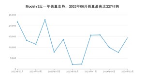 2024年3月,Model 3销量为14481辆,同比下降33.35%,环比增长90.44%。2023年03月-2024年03月份,Model 3销量为158268辆,同比下降0.86%。