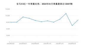 2024年3月,宝马X3销量为10119辆,同比增长12.23%,环比增长35.24%。2023年03月-2024年03月份,宝马X3销量为119079辆,同比增长3.07%。