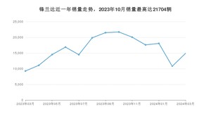 2024年3月,锋兰达销量为14913辆,同比增长60.86%,环比增长38.42%。2023年03月-2024年03月份,锋兰达销量为210617辆,同比增长79.56%。