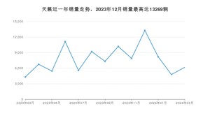 2024年3月,天籁销量为6149辆,同比增长43.33%,环比增长29.07%。2023年03月-2024年03月份,天籁销量为100086辆,同比下降24.69%。