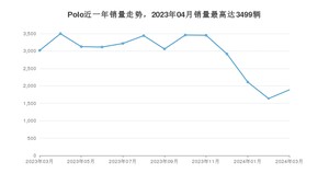 2024年3月,Polo销量为1887辆,同比下降37.48%,环比增长15.34%。2023年03月-2024年03月份,Polo销量为37943辆,同比增长38.61%。