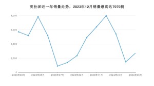 2024年3月,英仕派销量为2710辆,同比下降52.56%,环比增长85.87%。2023年03月-2024年03月份,英仕派销量为57407辆,同比下降22.29%。