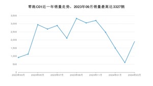 2024年3月,零跑C01销量为1904辆,同比增长107.41%,环比增长219.46%。2023年03月-2024年03月份,零跑C01销量为28709辆,同比增长370.1%。