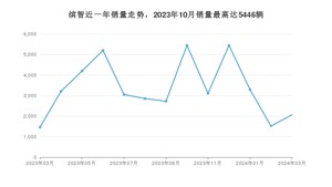 2024年3月,缤智销量为2067辆,同比增长41.19%,环比增长35.99%。2023年03月-2024年03月份,缤智销量为43594辆,同比下降48.1%。