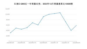 2024年3月,红旗E-QM5销量为5911辆,同比增长88.49%,环比增长48.97%。2023年03月-2024年03月份,红旗E-QM5销量为87574辆,同比增长104.69%。