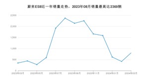 2024年3月,蔚来ES8销量为802辆,同比增长131.79%,环比增长93.72%。2023年03月-2024年03月份,蔚来ES8销量为15396辆,同比增长21.38%。