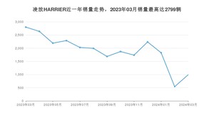 2024年3月,凌放HARRIER销量为994辆,同比下降64.49%,环比增长84.07%。2023年03月-2024年03月份,凌放HARRIER销量为24827辆,同比下降37.19%。