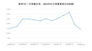 2024年3月,瑞虎7销量为2855辆,同比下降7.46%,环比下降21.82%。2023年03月-2024年03月份,瑞虎7销量为59196辆,同比增长17.38%。