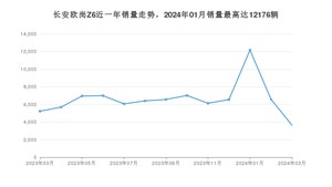 2024年3月,长安欧尚Z6销量为3636辆,同比下降30.45%,环比下降44.83%。2023年03月-2024年03月份,长安欧尚Z6销量为86003辆,同比增长34.44%。