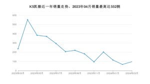 2024年3月,K5凯酷销量为97辆,同比下降59.07%,环比增长44.78%。2023年03月-2024年03月份,K5凯酷销量为3021辆,同比下降52.37%。