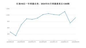 2024年3月,红旗H6销量为1078辆,同比增长173.6%,环比增长30.98%。2023年03月-2024年03月份,红旗H6销量为12626辆,同比增长3%。