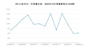 2024年3月,ZR-V 致在销量为625辆,同比下降20.79%,环比增长6.47%。2023年03月-2024年03月份,ZR-V 致在销量为15343辆,同比增长193.03%。