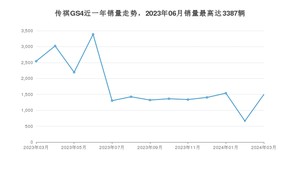 2024年3月,传祺GS4销量为1497辆,同比下降41.13%,环比增长125.45%。2023年03月-2024年03月份,传祺GS4销量为23000辆,同比下降67.96%。