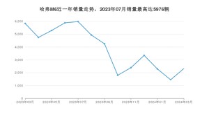 2024年3月,哈弗M6销量为2318辆,同比下降60.23%,环比增长60.3%。2023年03月-2024年03月份,哈弗M6销量为50482辆,同比下降31.24%。