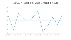 2024年3月,比亚迪D1销量为135辆,同比增长14.41%,环比增长125%。2023年03月-2024年03月份,比亚迪D1销量为1115辆,同比增长5.79%。