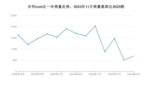 2024年3月,吉利icon销量为687辆,同比下降57.72%,环比增长34.44%。2023年03月-2024年03月份,吉利icon销量为18269辆,同比下降35.93%。